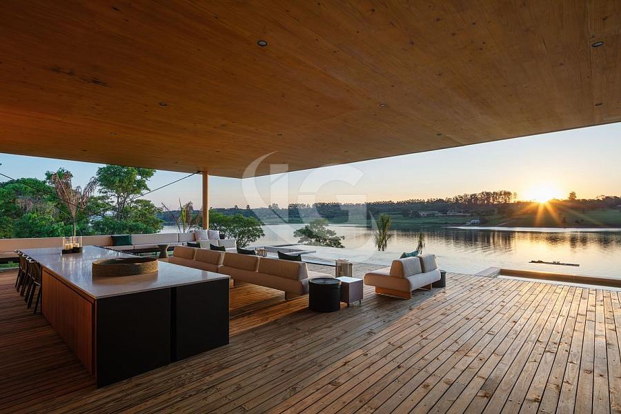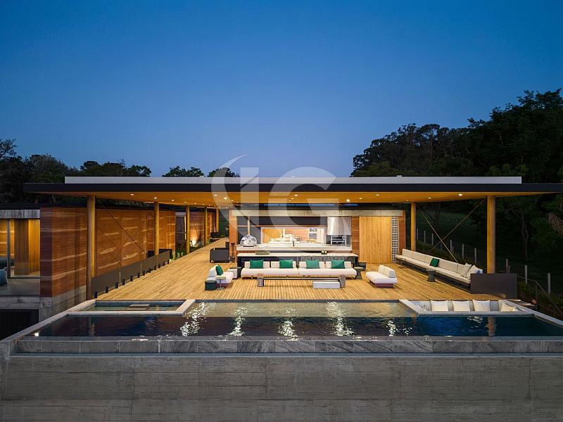 A Casa Píer, localizada em Avaré, SP, a apenas 2h30 de São Paulo, é considerada uma das mais impressionantes do Brasil. Projetada pelo renomado arquiteto Sérgio Sampaio, essa obra-prima está situada à beira da represa Jurumirim, no braço mais exclusivo e valorizado, com o pôr do sol como um de seus maiores destaques. O terreno de 9.900 m² abriga uma quadra de tênis, quadra de beach tênis, jardins exuberantes, um píer para barco e dois jet skis, além de uma casa de hóspedes/serviço com duas suítes, cozinha e lavanderia.