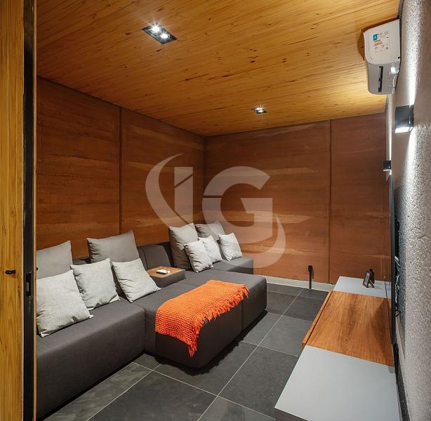 No subsolo, há um salão de jogos com projetor, que pode ser transformado em uma academia, balada ou outro ambiente conforme a necessidade. A garagem foi projetada para armazenar barco e quadriciclo, garantindo que os “brinquedos” da casa fiquem bem guardados.