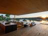 A área gourmet é o grande destaque, com um vão livre de 14 metros e uma mesa para 15 pessoas, feita sob medida em aço e pesando impressionantes 800 kg. O espaço ainda conta com forno de pizza em inox, churrasqueira parrilla, e móveis exclusivos da TIDELLI.