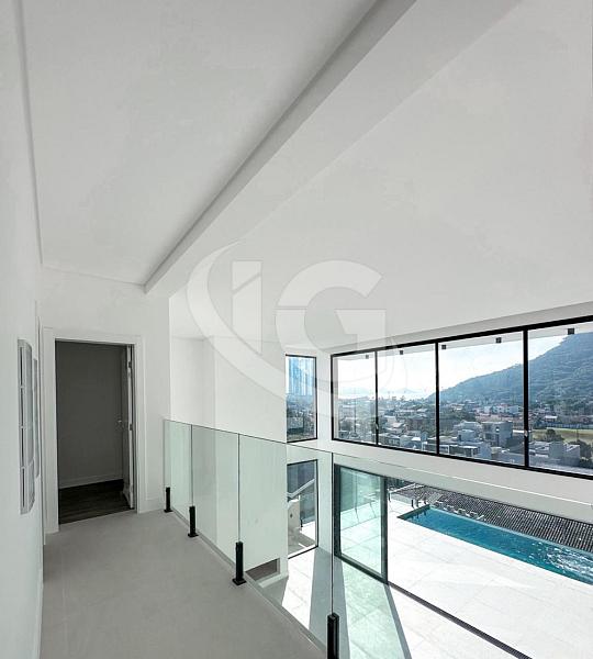 A residência conta com 4 suítes, incluindo uma suíte master com closet e banheira, garantindo um espaço privado de relaxamento e conforto. A sala de estar é aconchegante e elegante, equipada com uma lareira que se torna o ponto focal nas noites mais frias. A piscina com borda infinita oferece uma vista deslumbrante para o mar, proporcionando momentos inesquecíveis de lazer e contemplação.